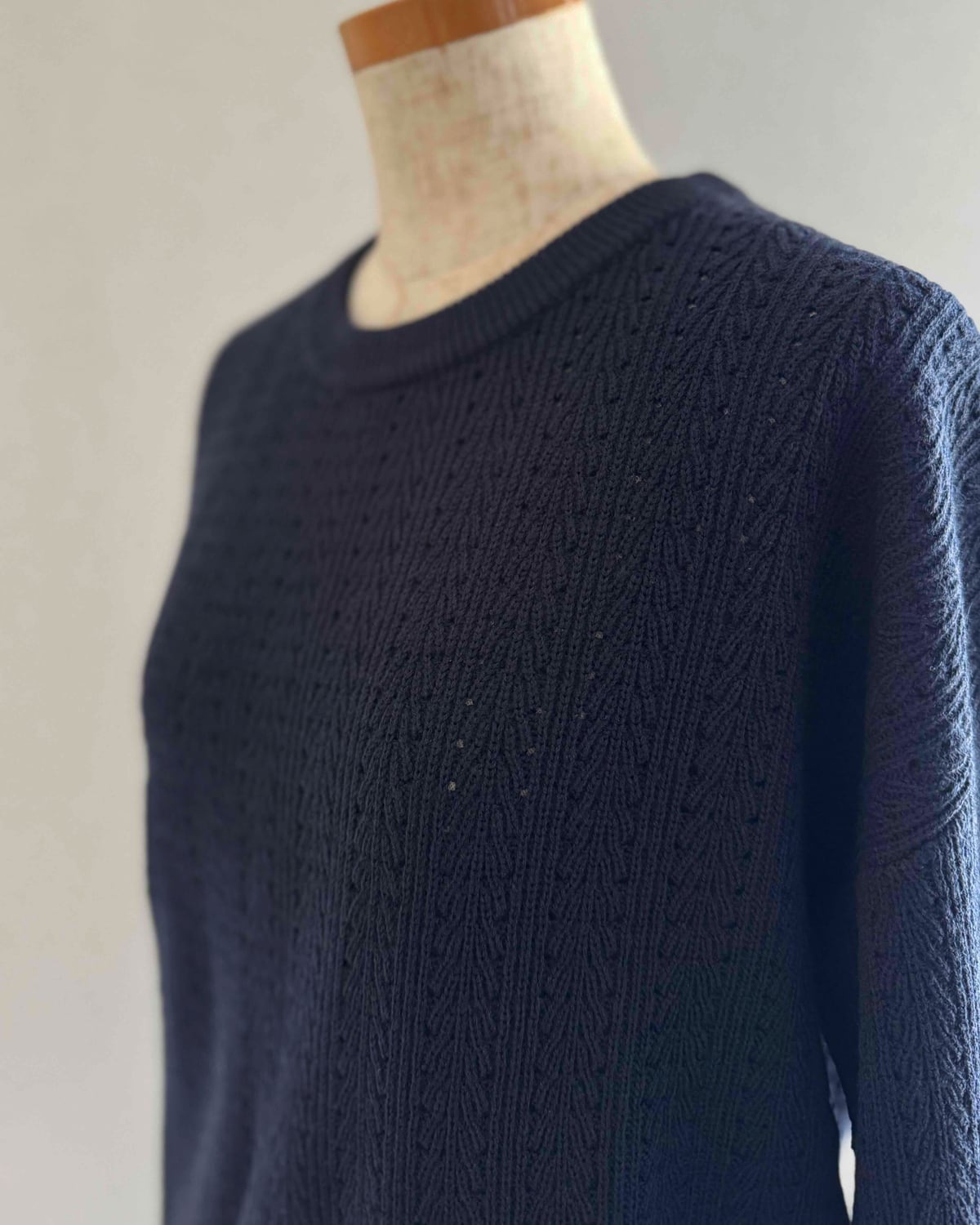 小さな穴の開いたような編み模様が縦に並ぶデザインです。