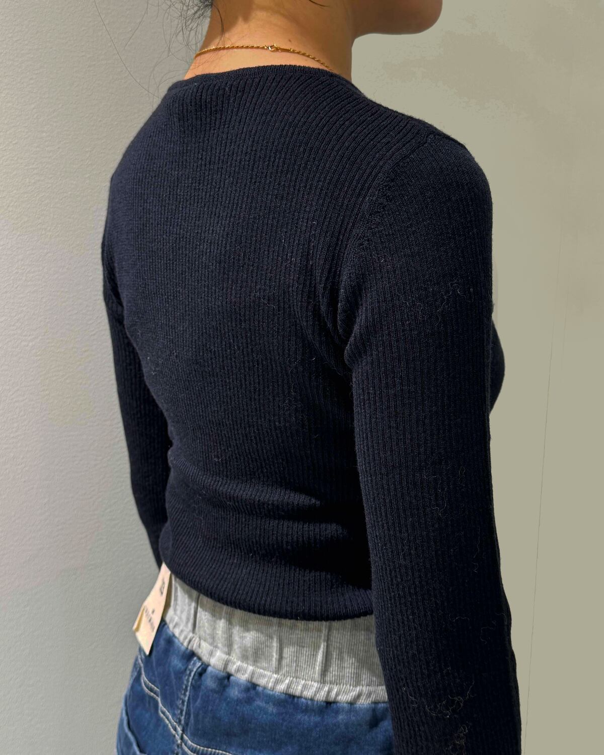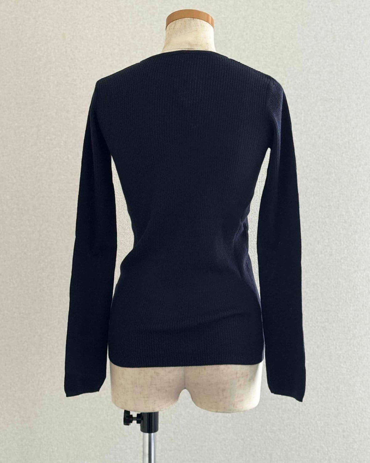 身体にフィットする、コンパクトなタイプの薄手のニットです。