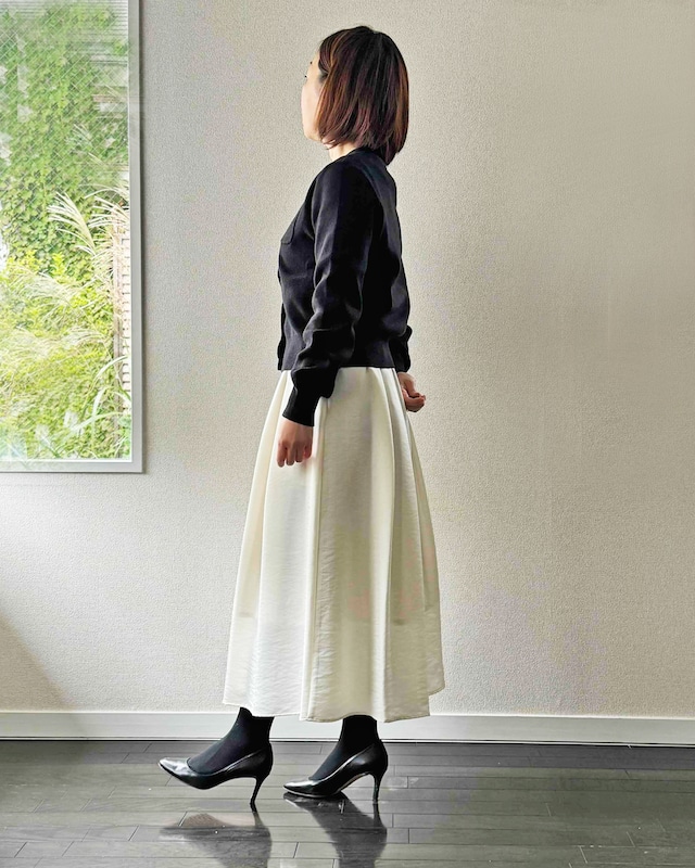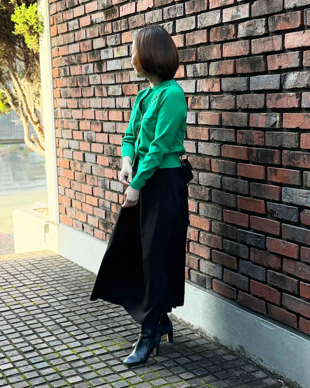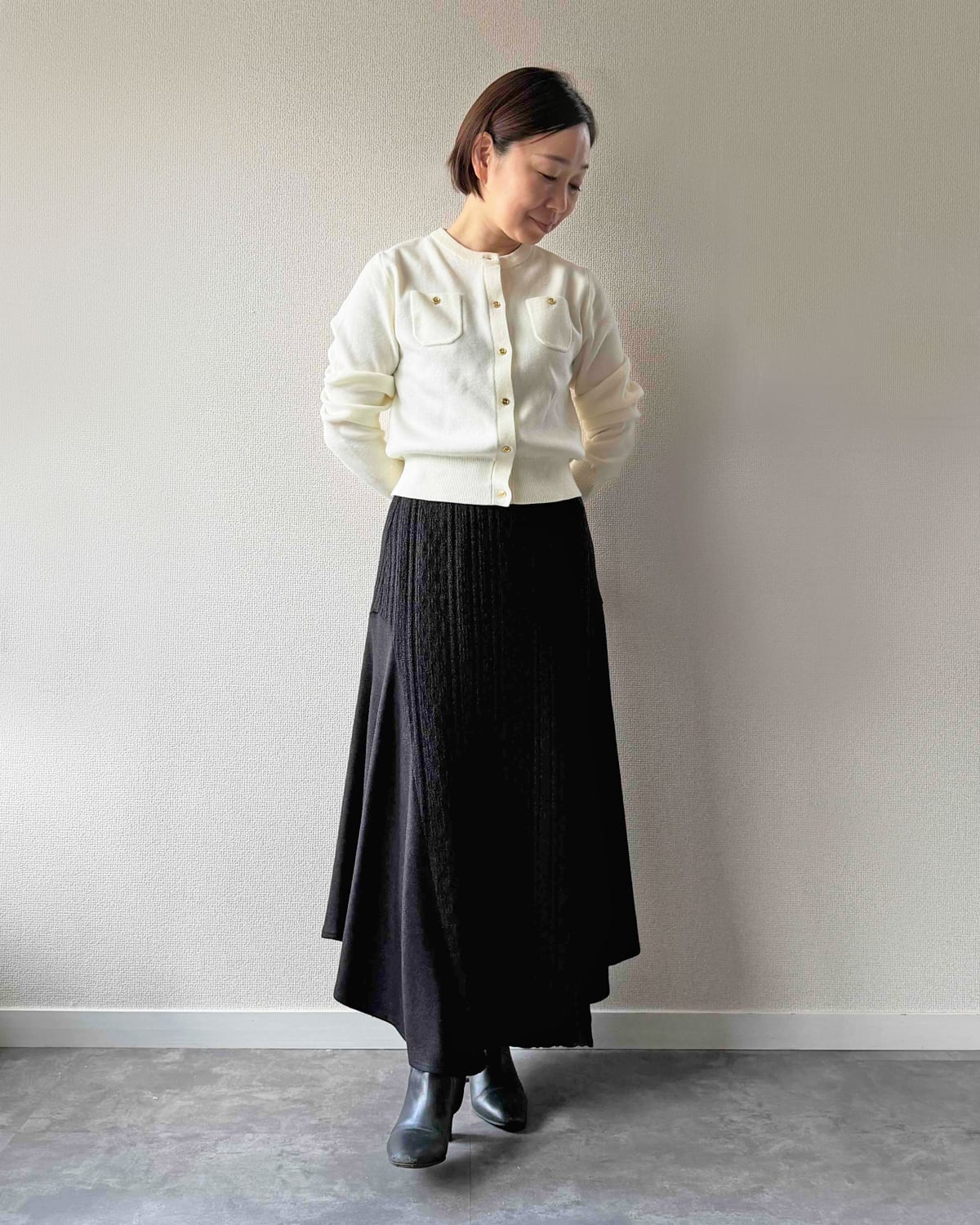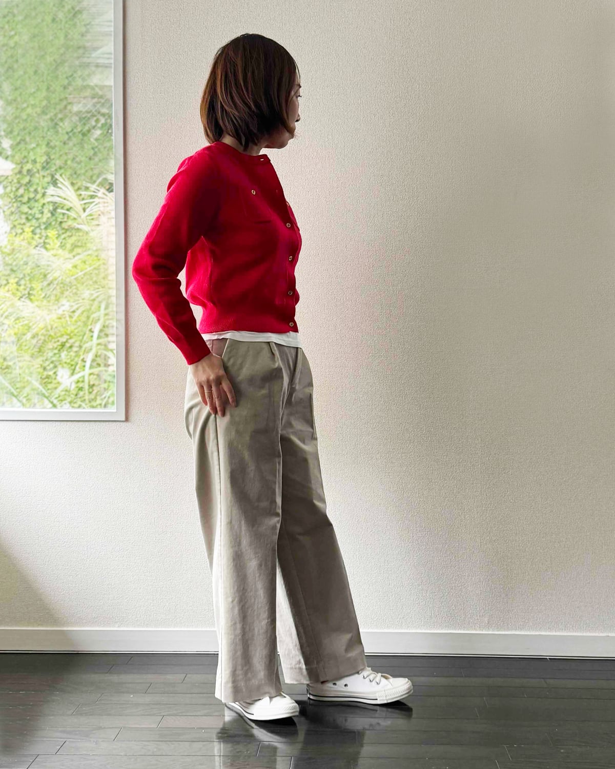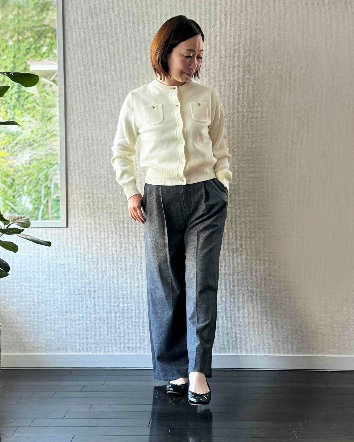 カーディガンとしてもニットとしてもバランスの良い着丈です。