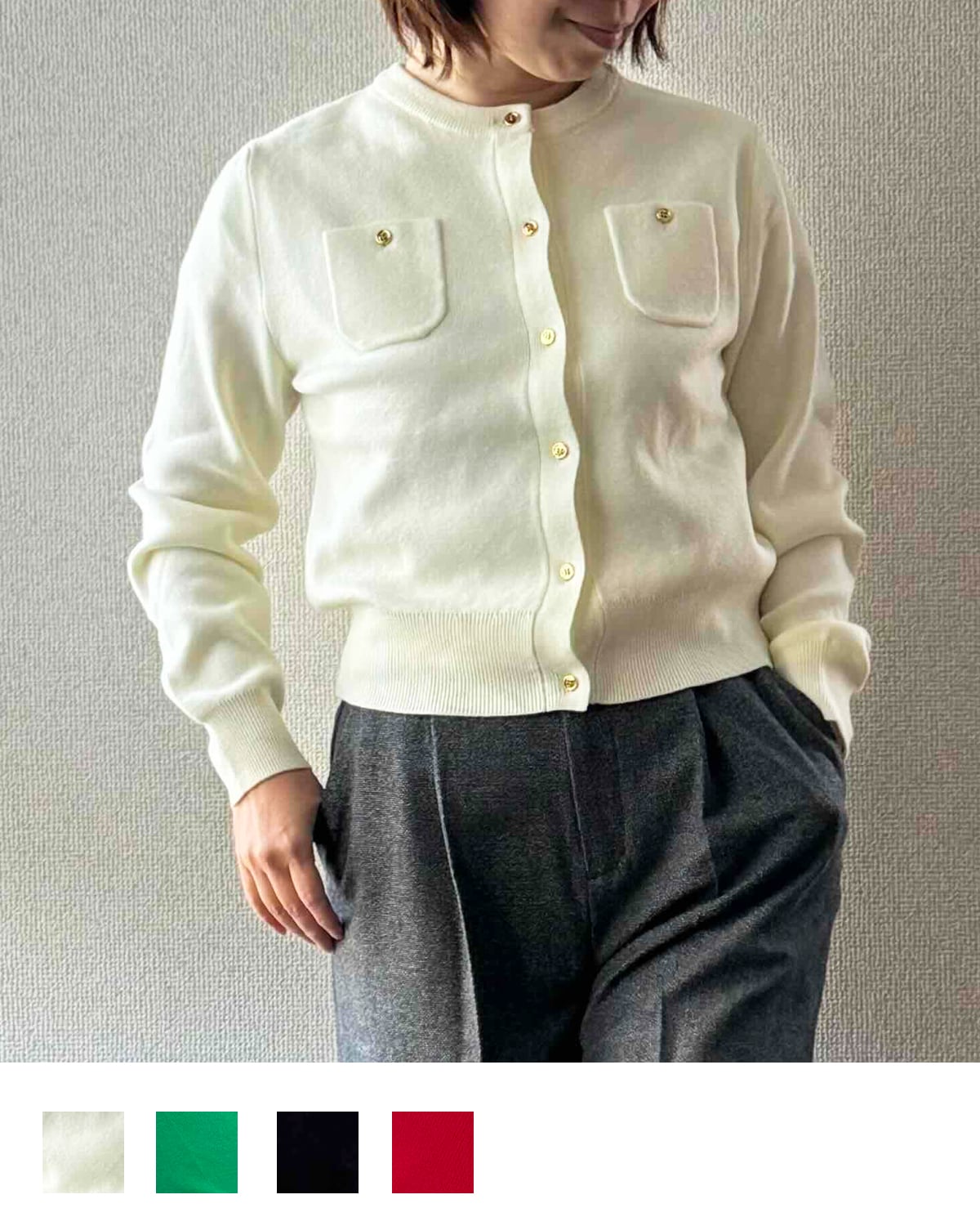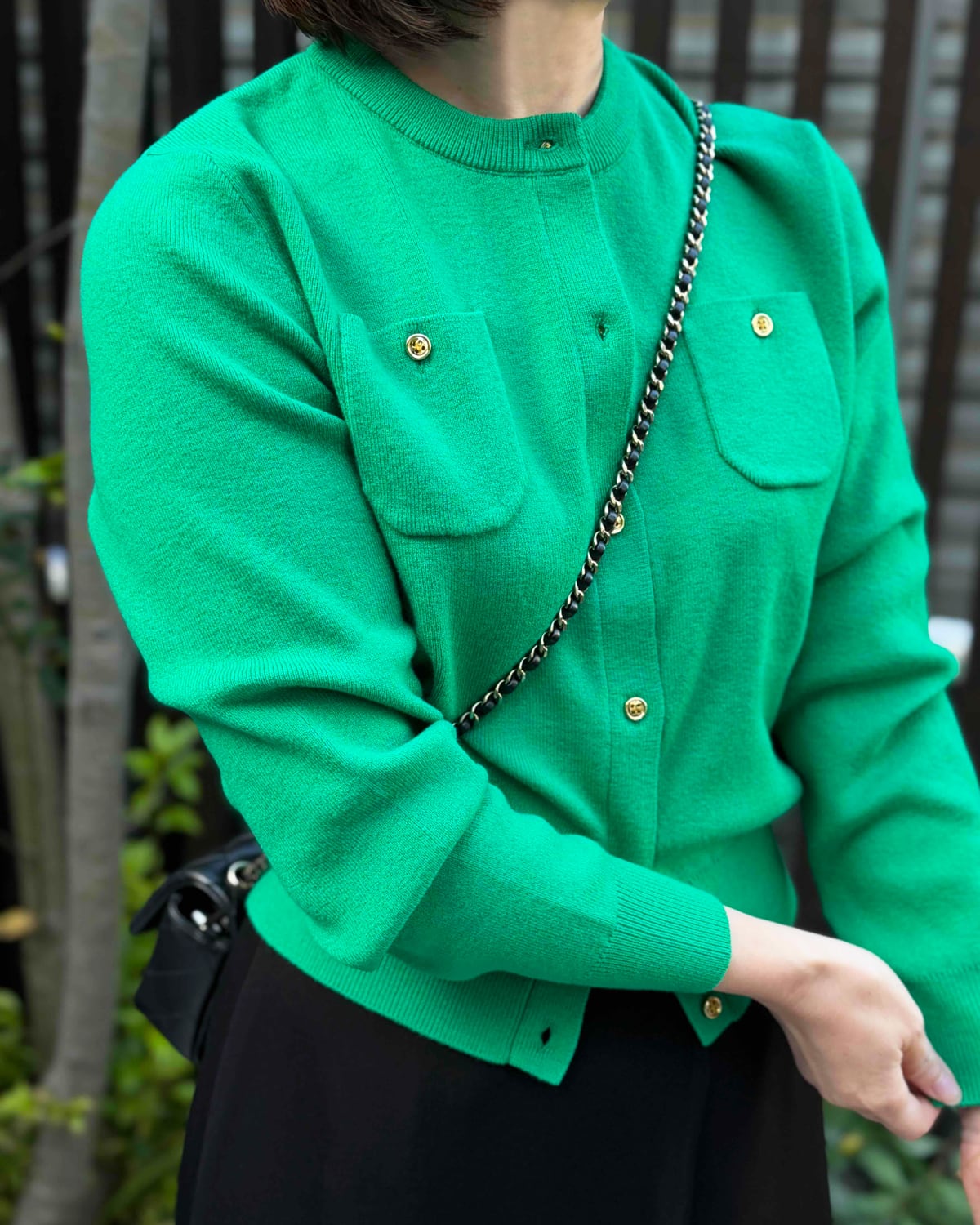定番カラーのブラックのカーディガンは既にお持ちの方も多いと思いますが