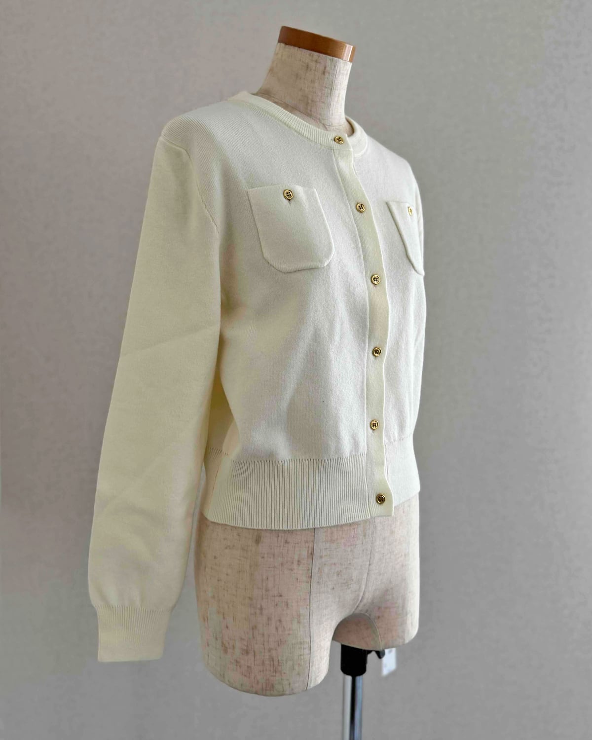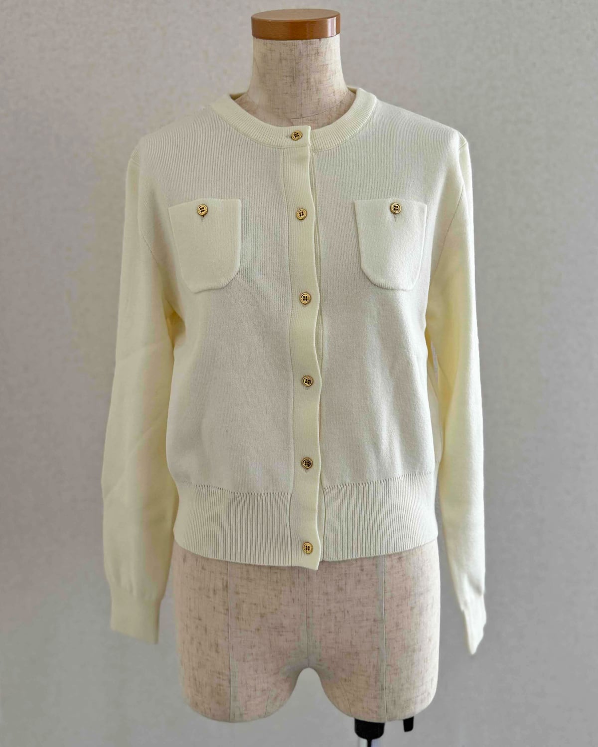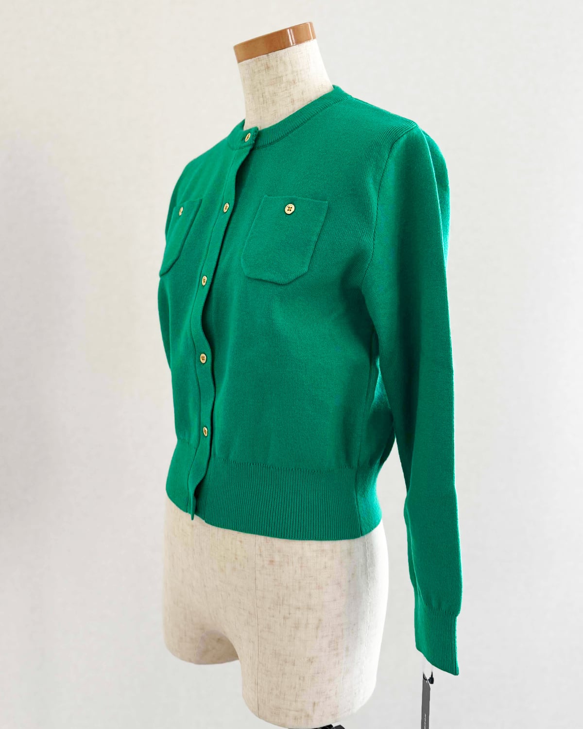 胸元に付いた小さなポケットがアクセントになったカーディガン。