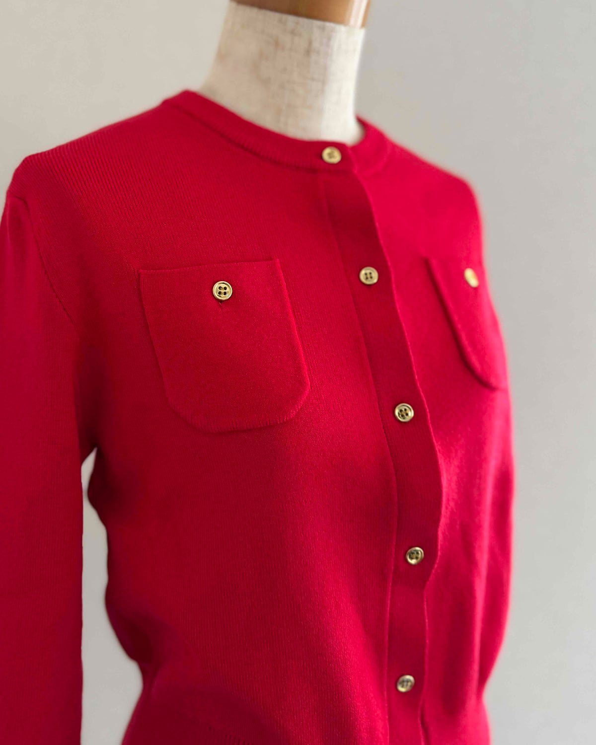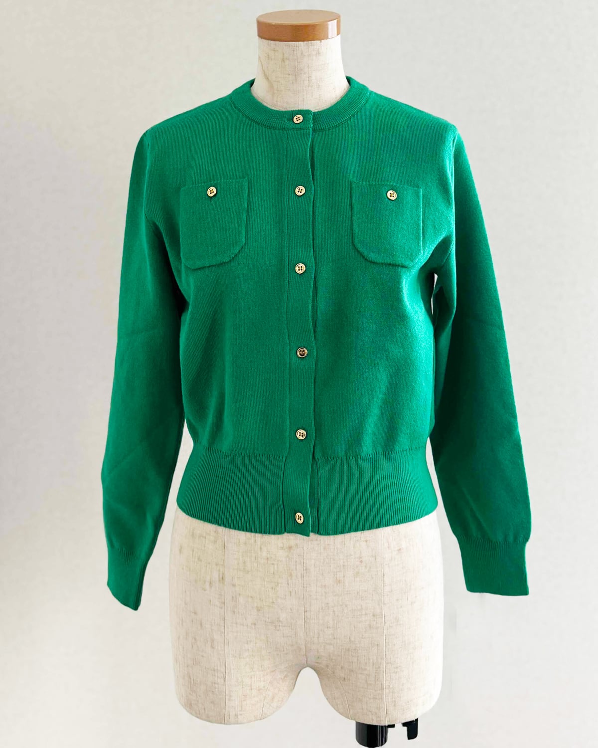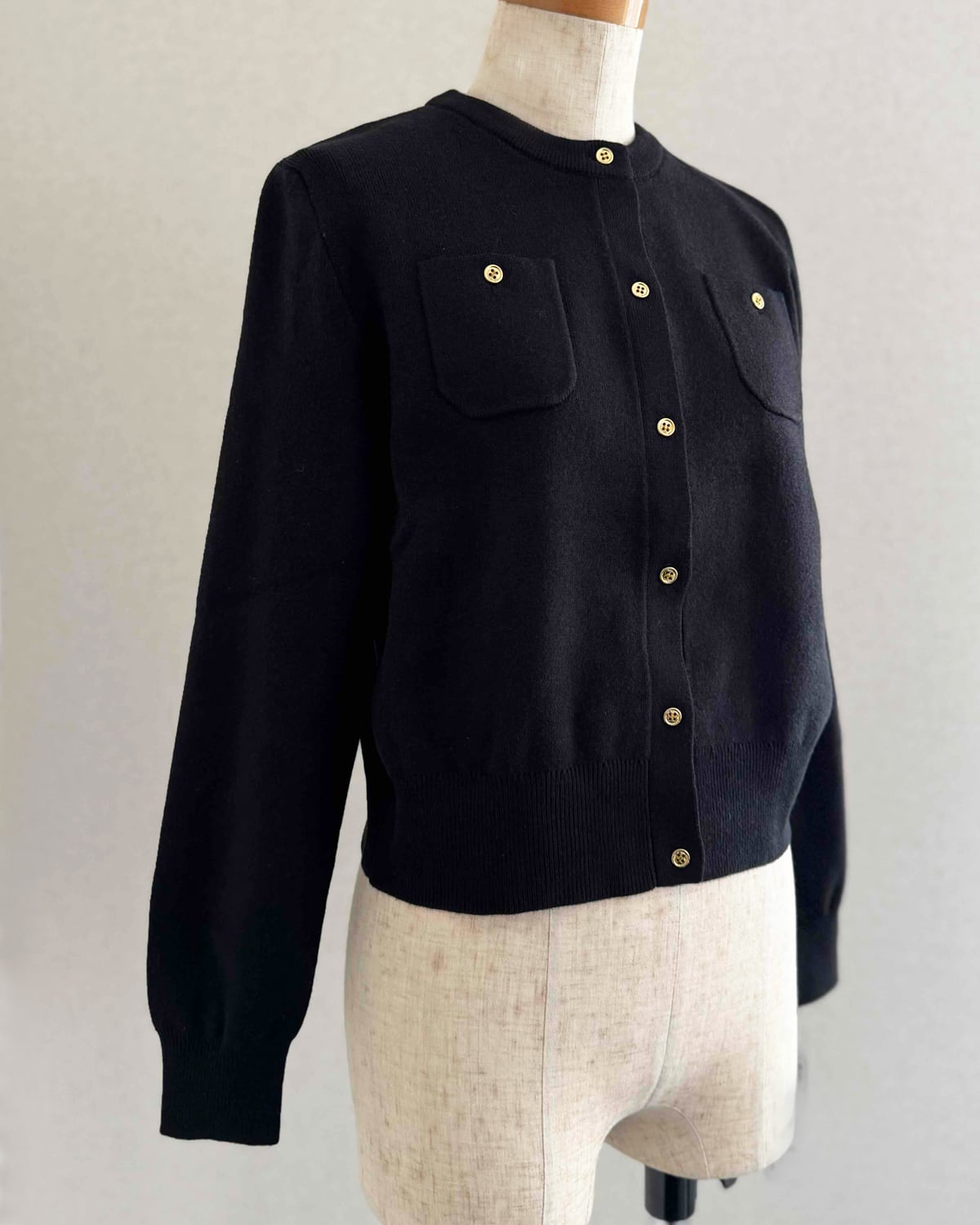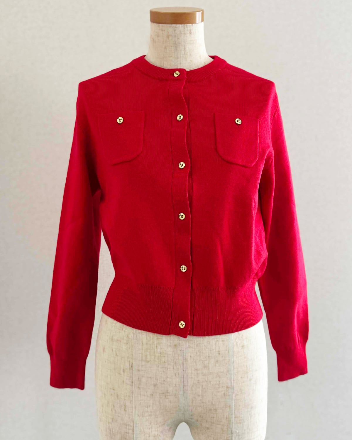 胸元に付いた小さなポケットがアクセントになったカーディガン。