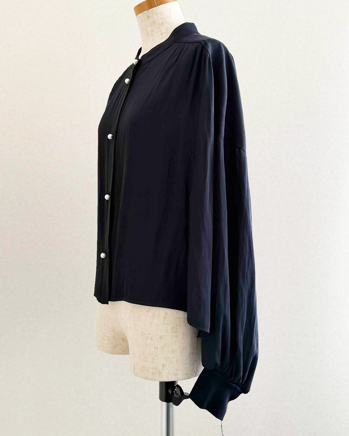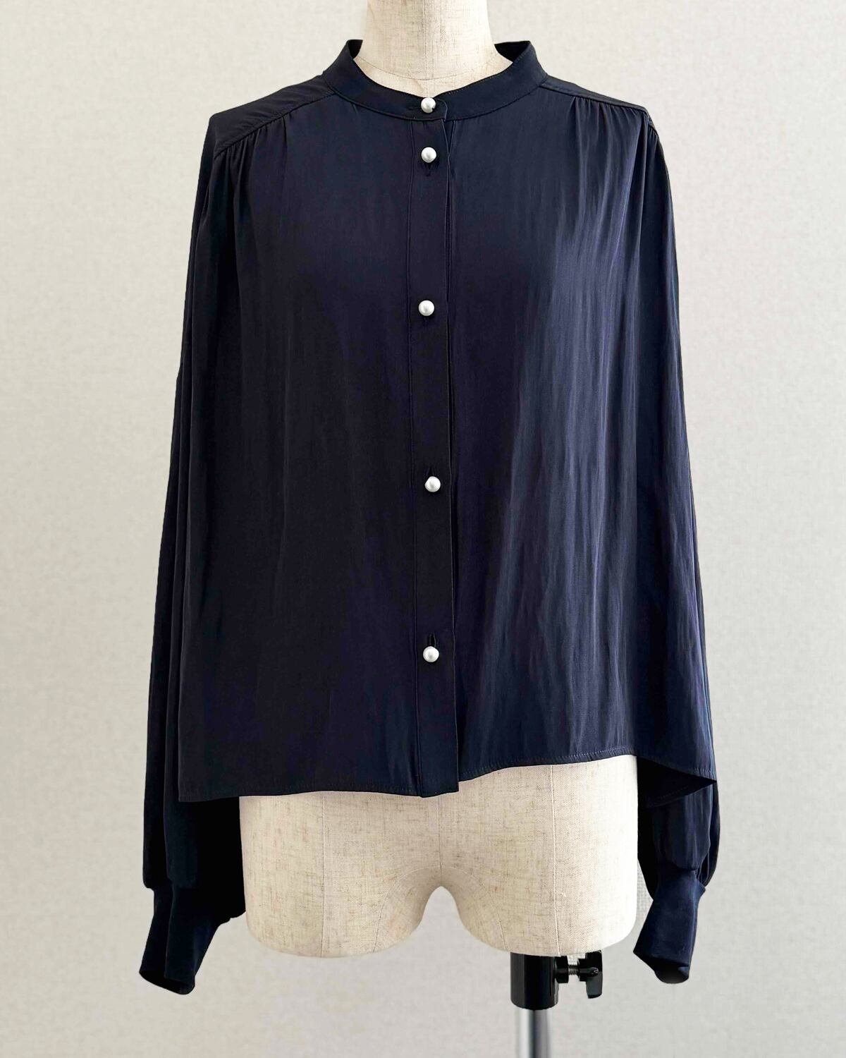 ネイビーとパールボタンのコントラストが素敵な1枚です。