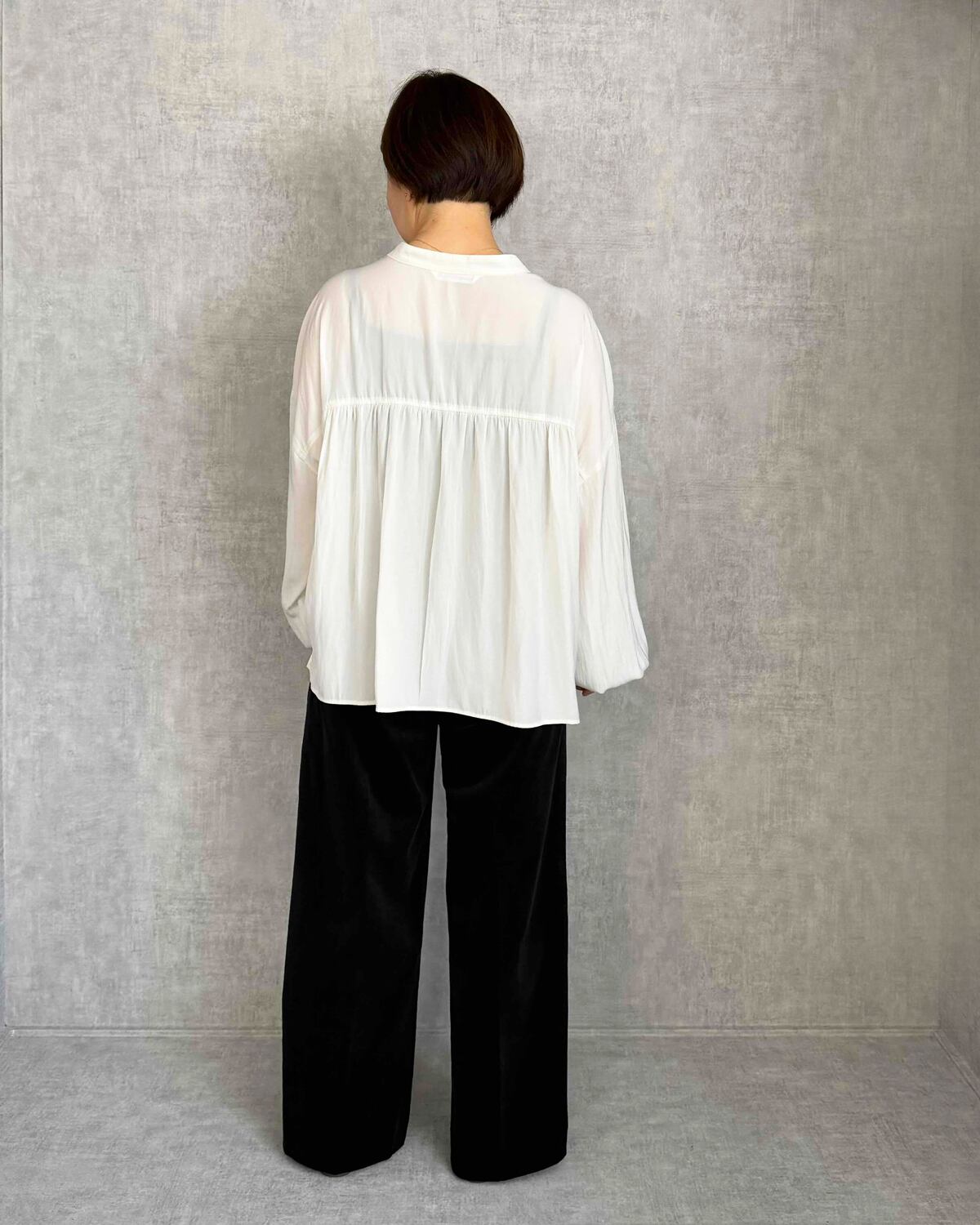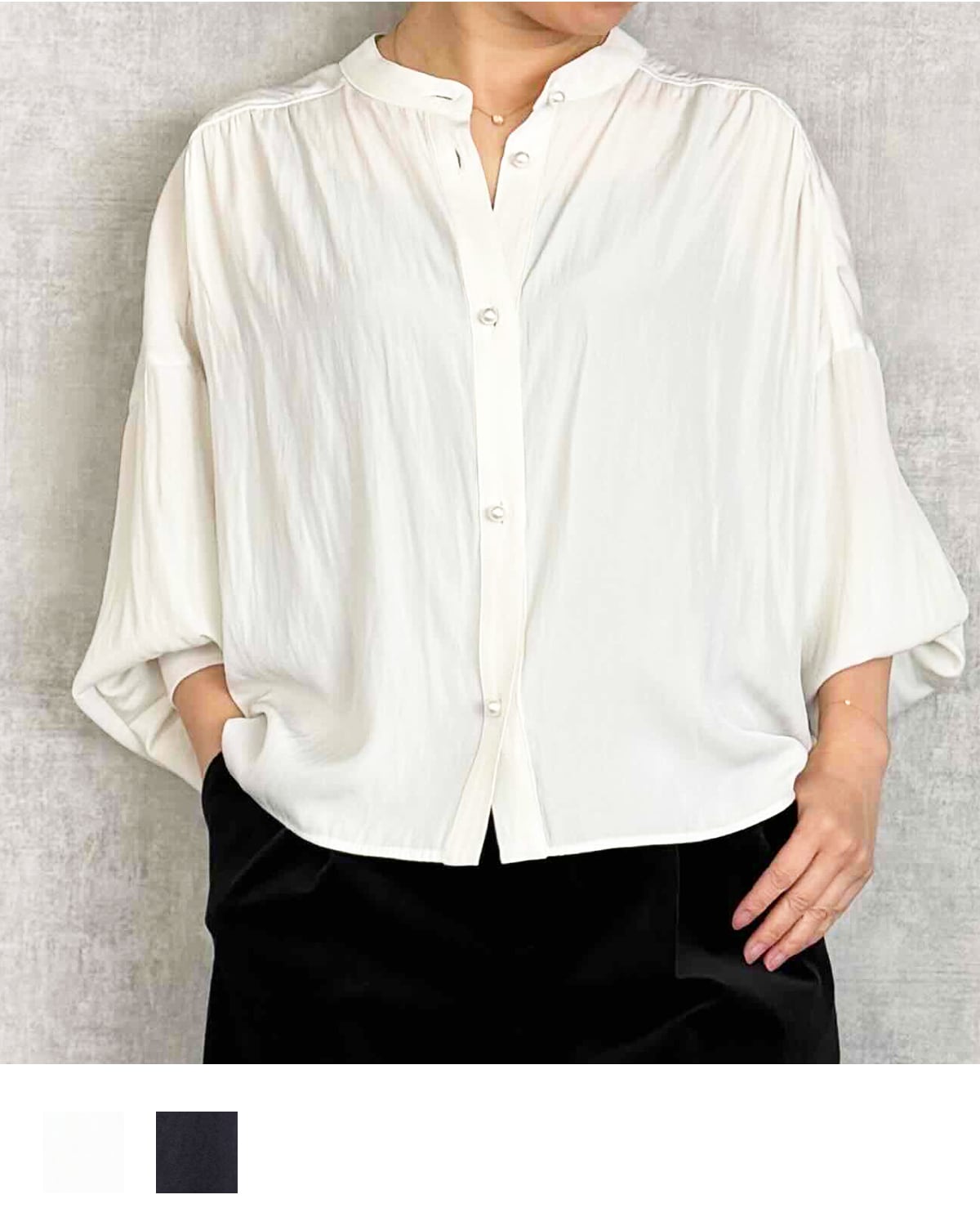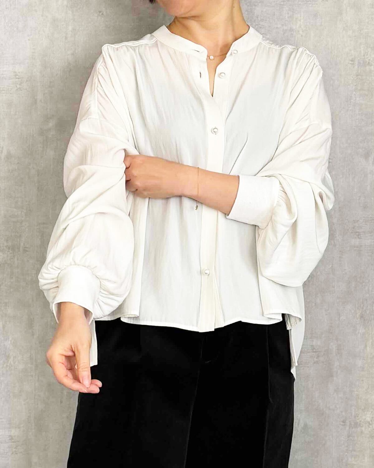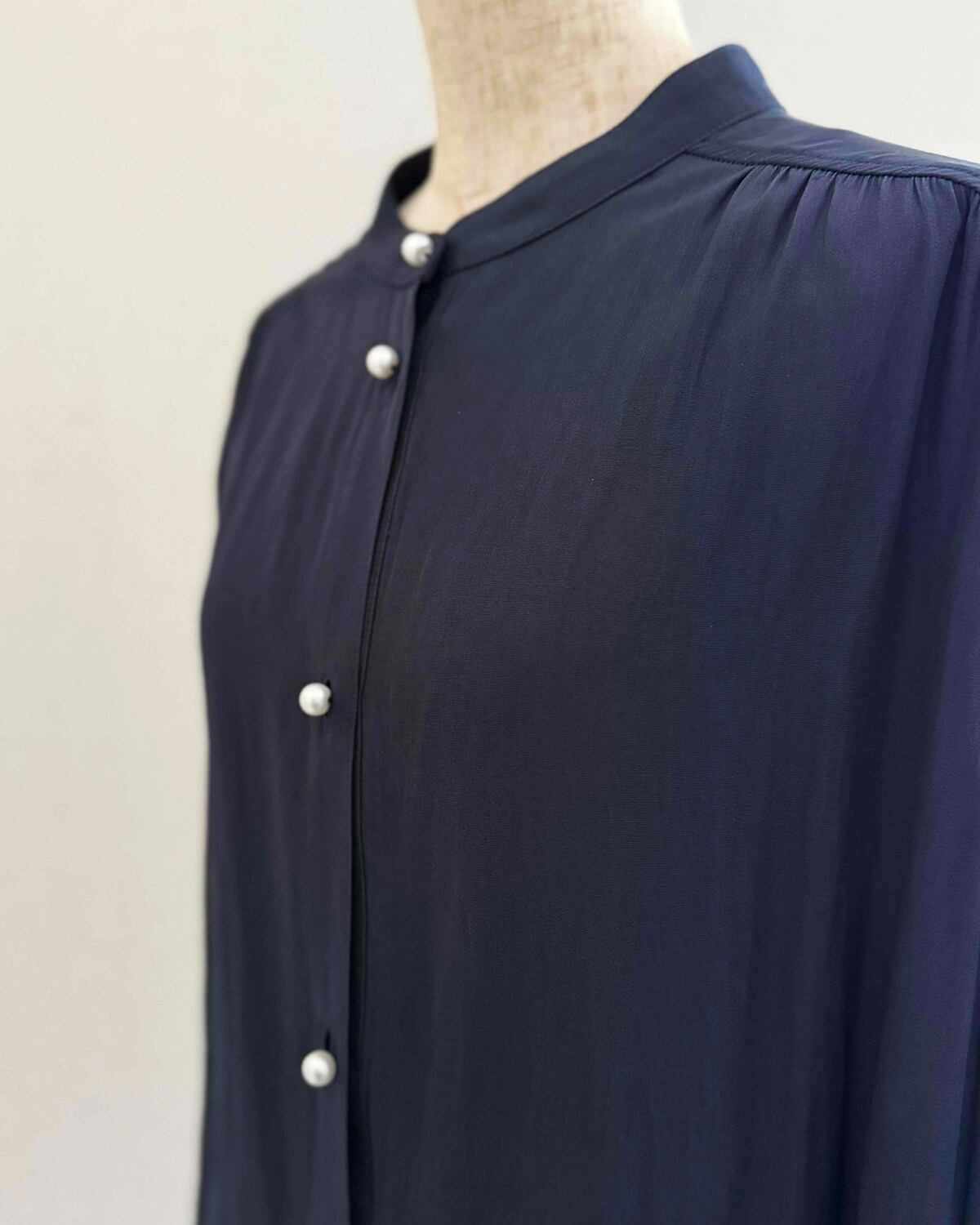 バンドカラーのシンプルな首元になっています。