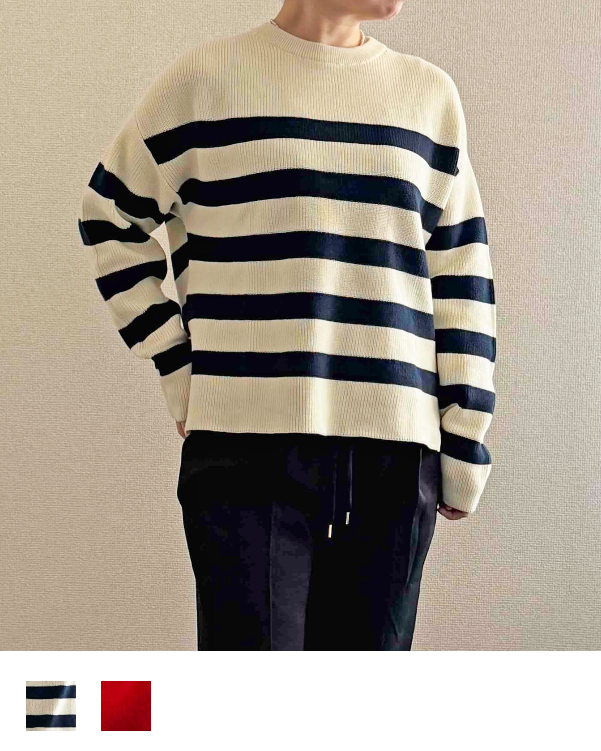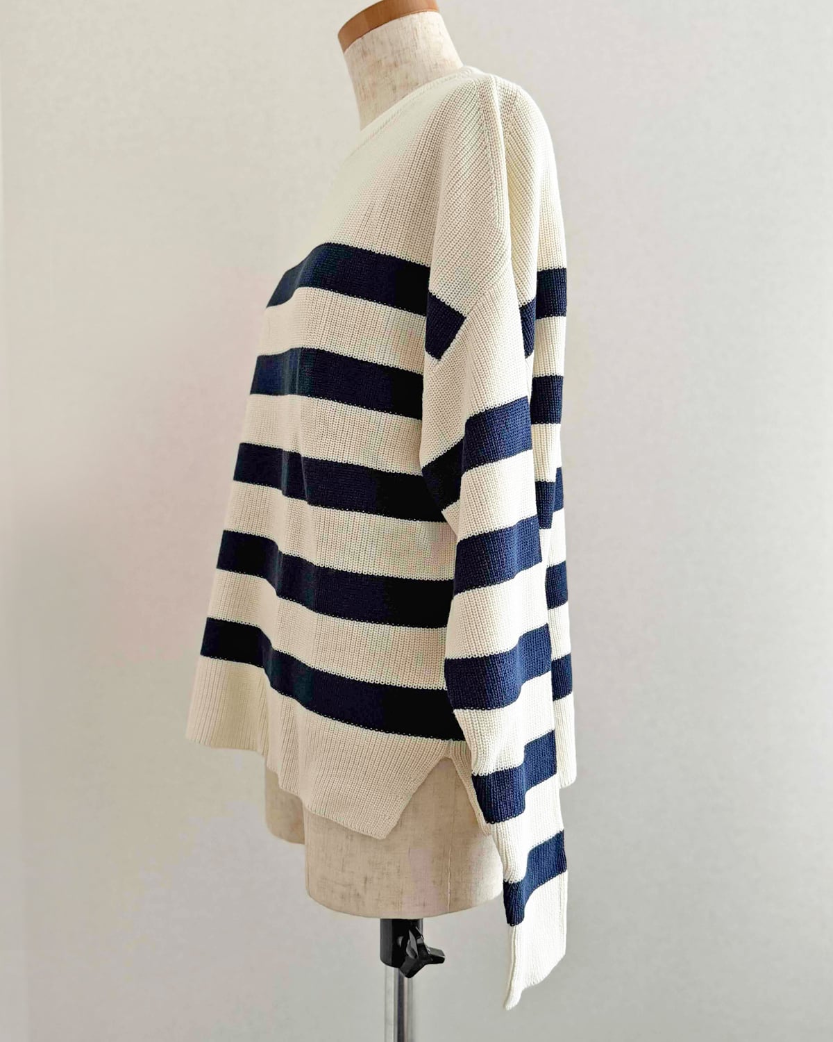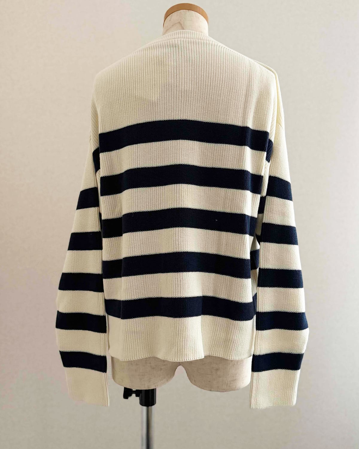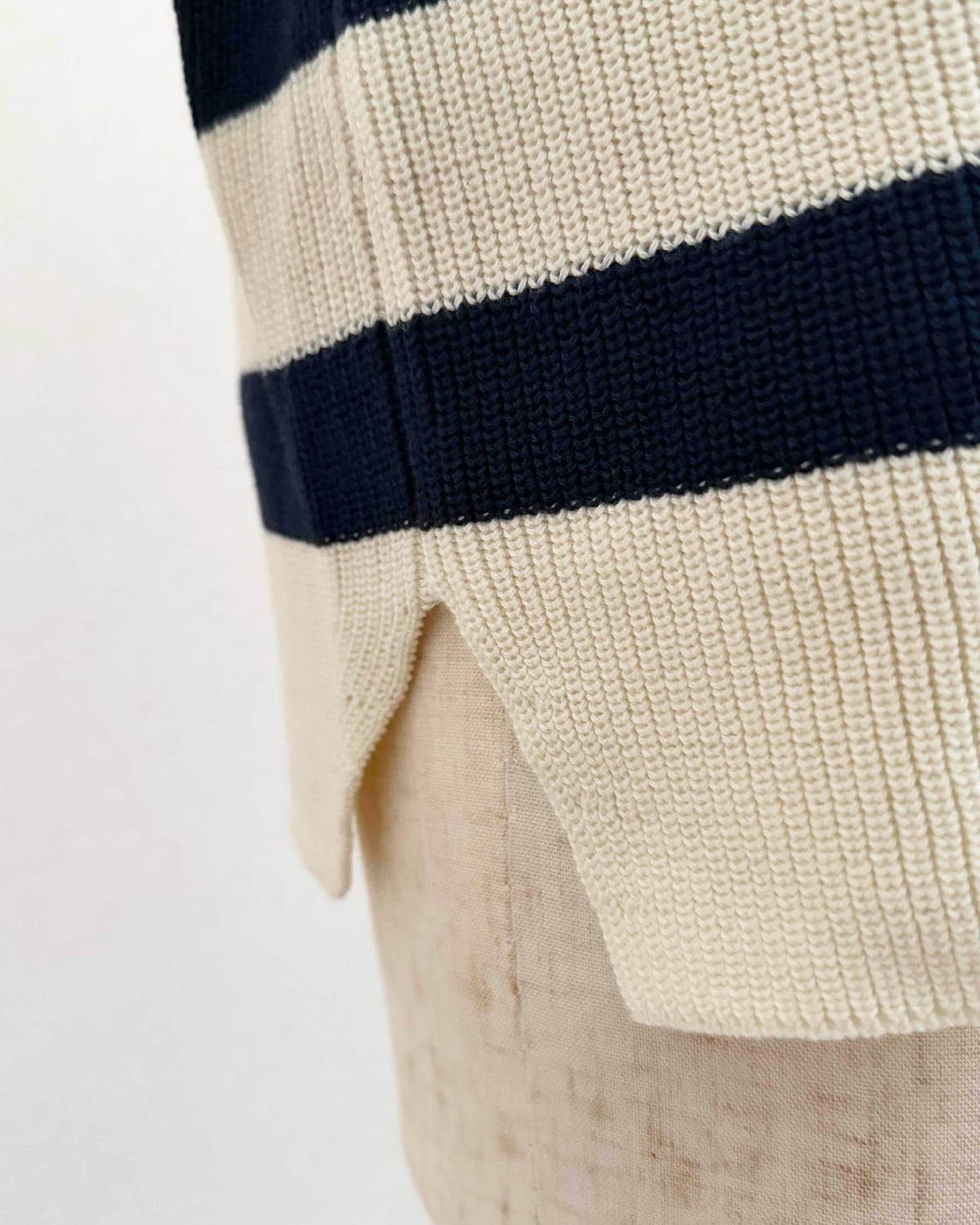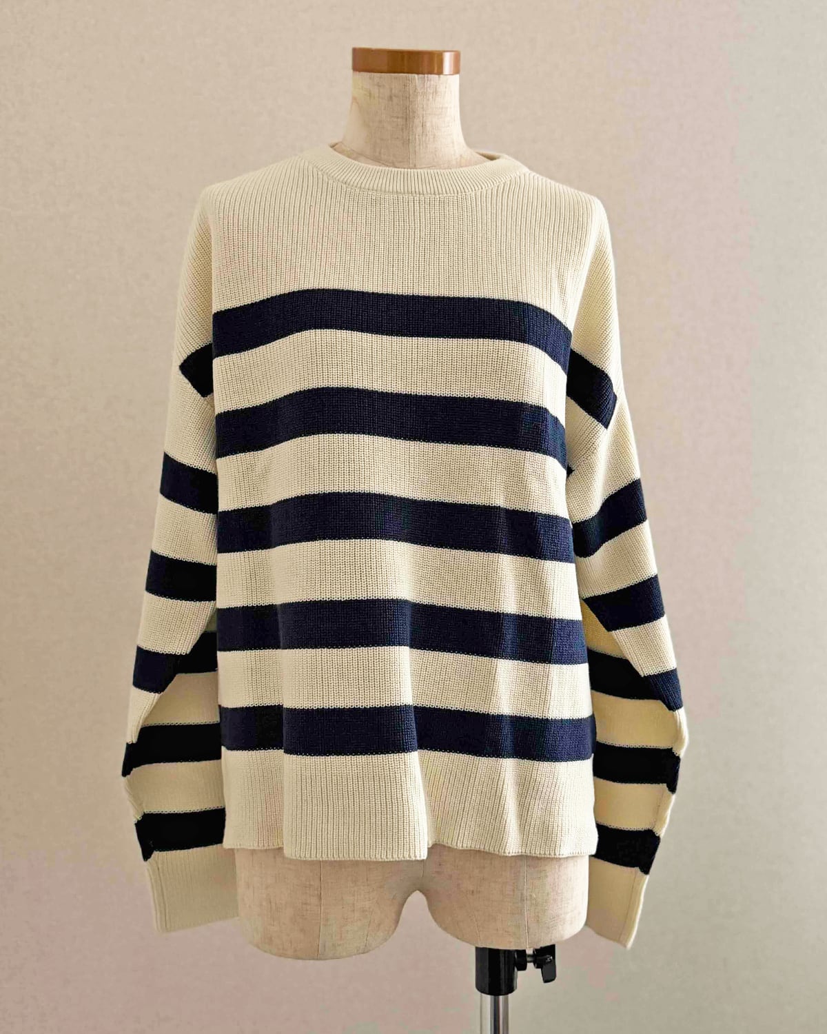 オフホワイトとネイビーの太めのボーダーです