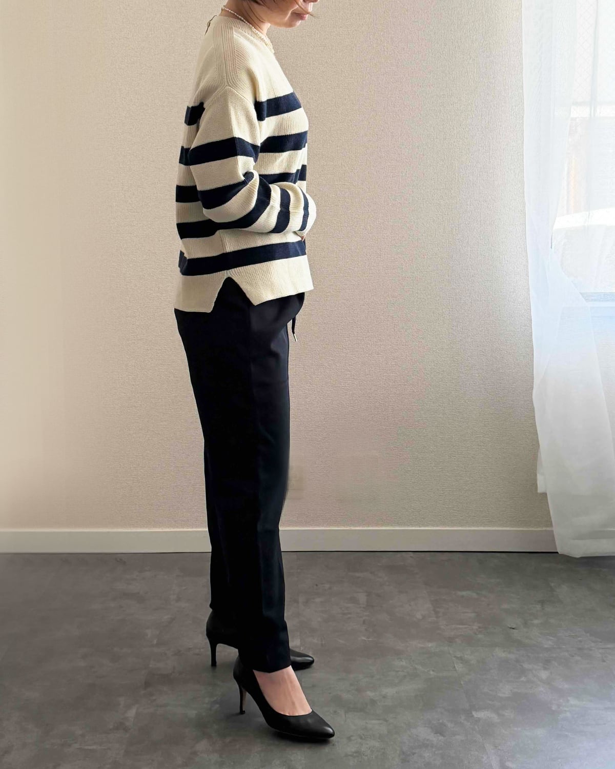 デコルテ部分にはボーダーが入っていないので