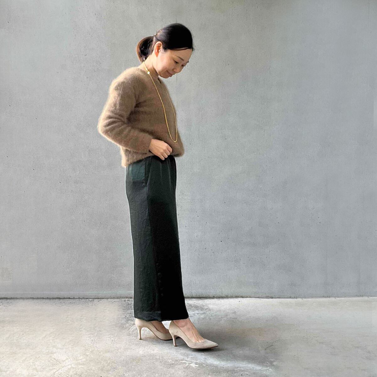 合わせるトップスによってカジュアルにも着ていただけます。