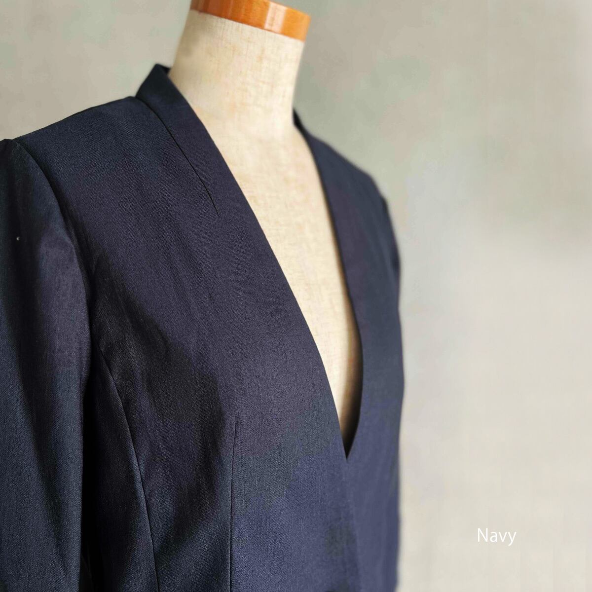 ノーカラーでスッキリと。