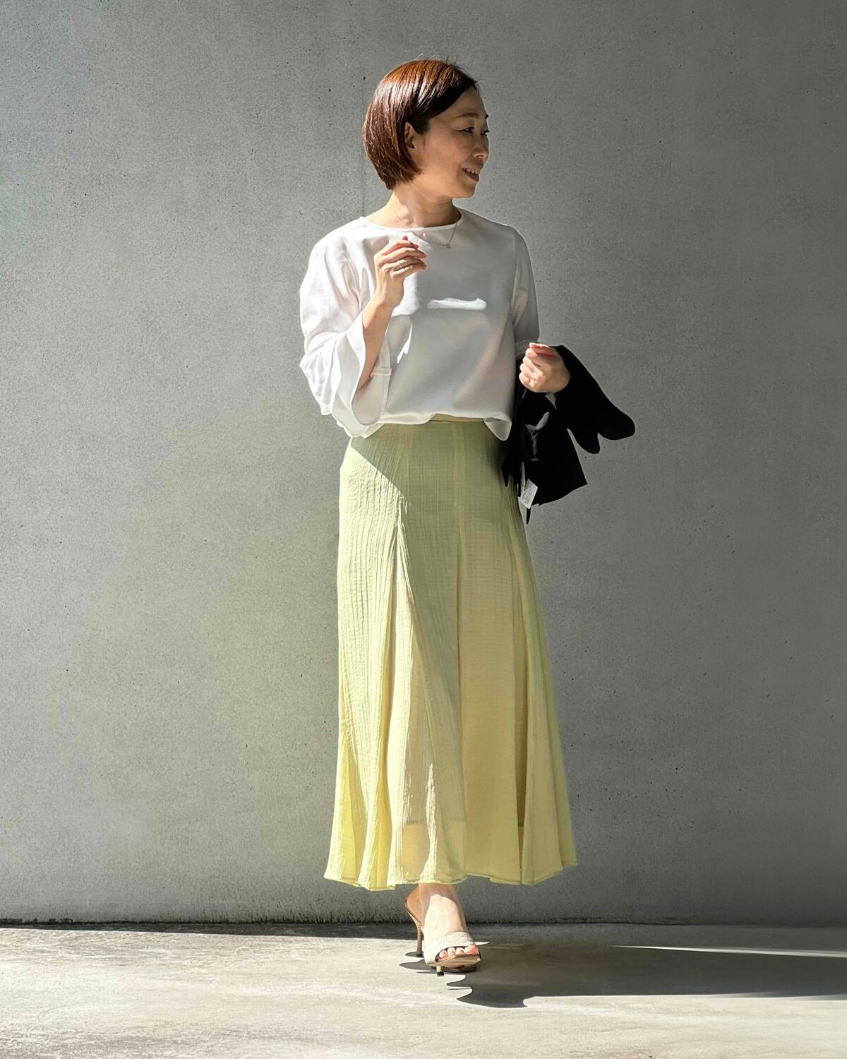 イエローに合わせているブラウス(ホワイト)