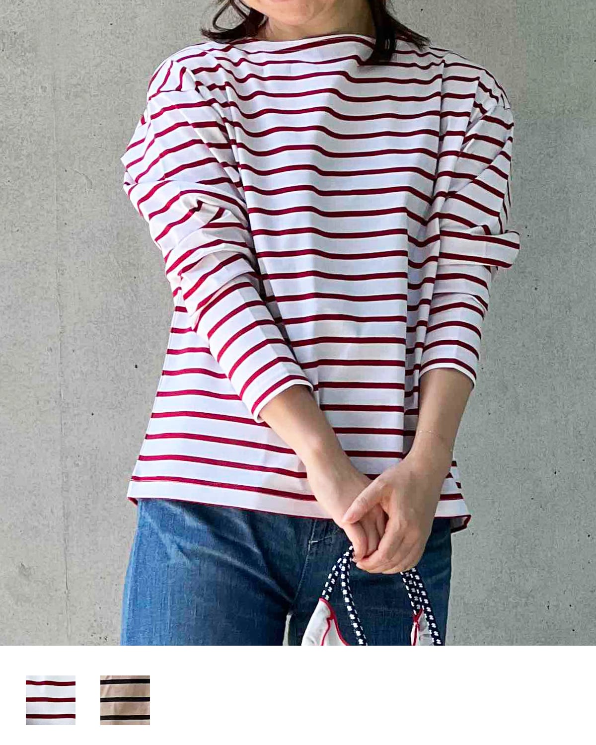 首元は詰まっているボートネックなので