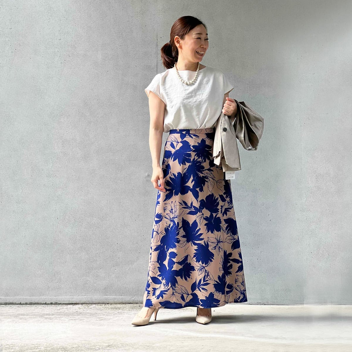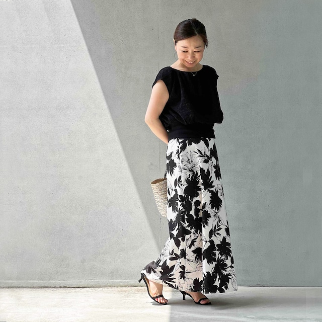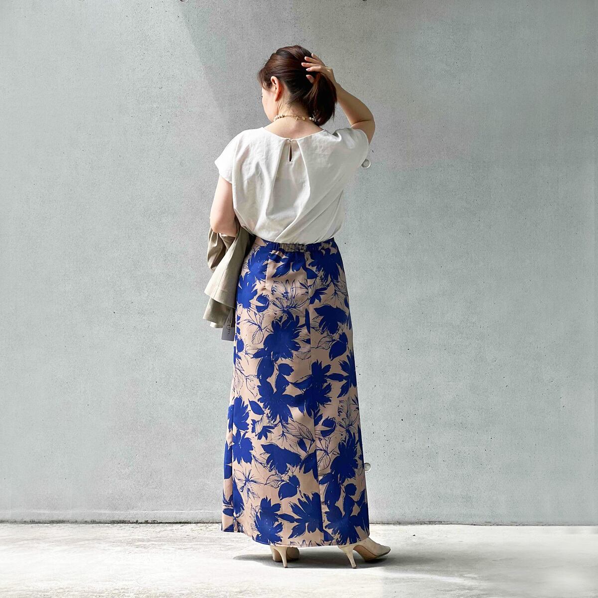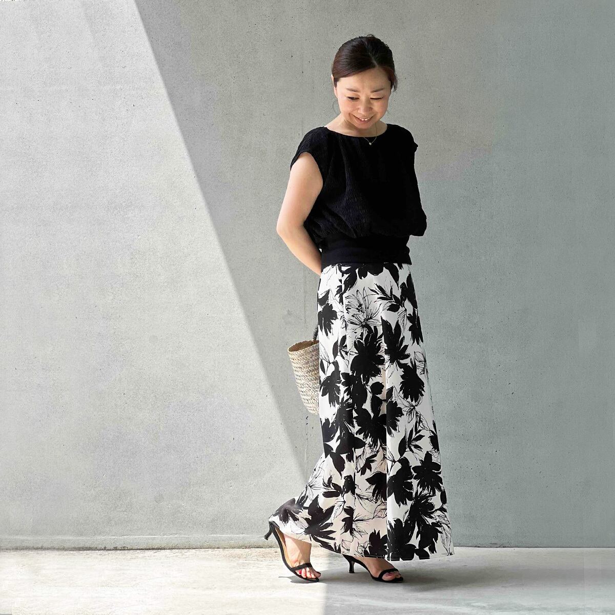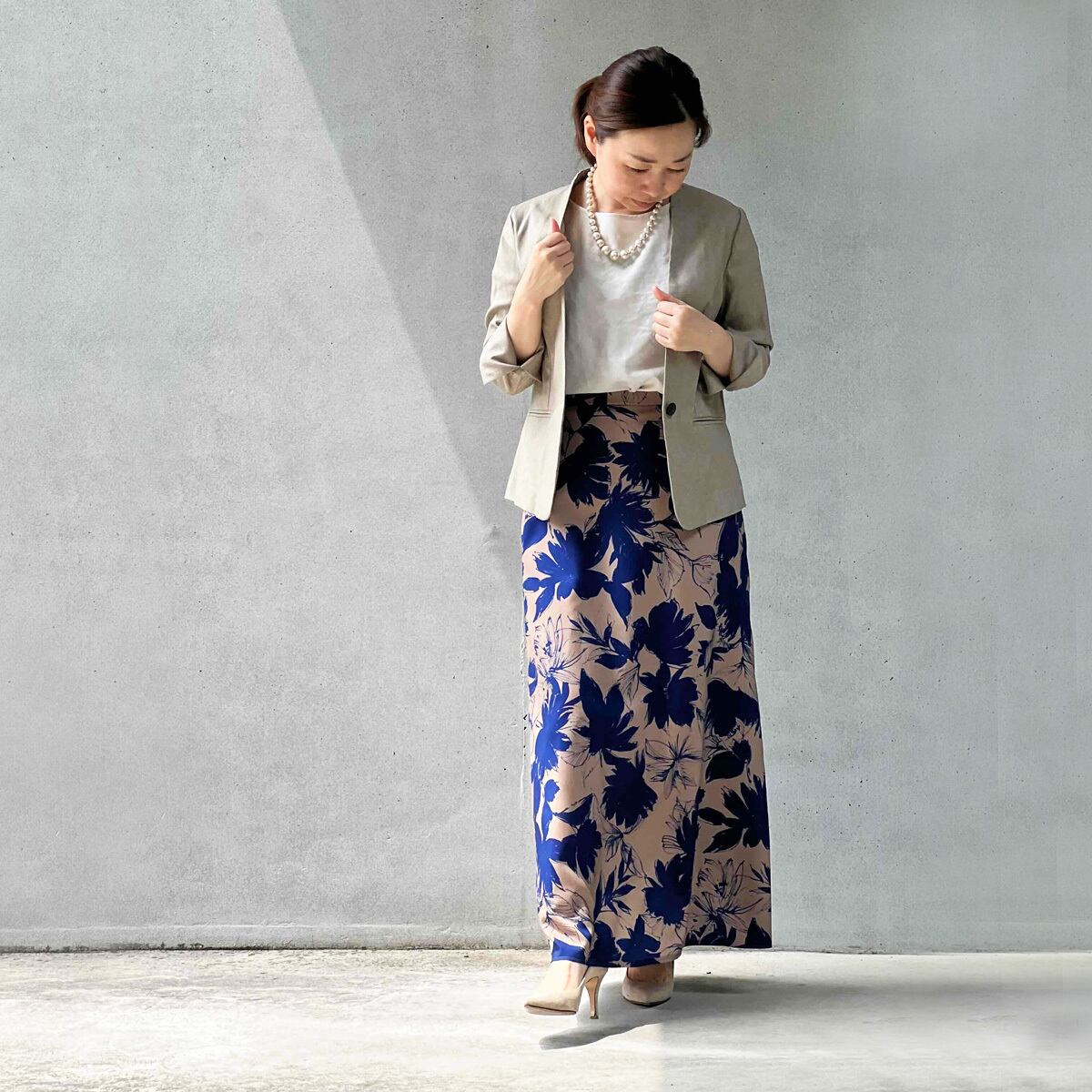 大人の雰囲気のフラワープリントスカート。