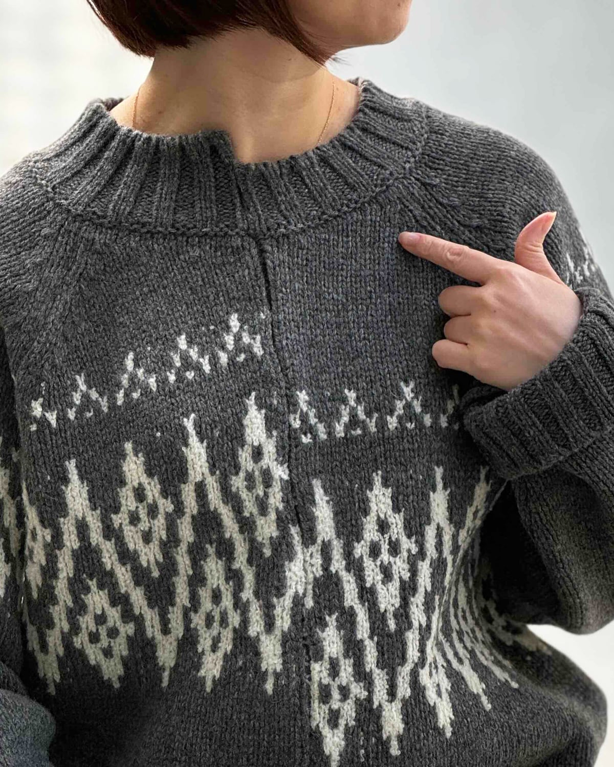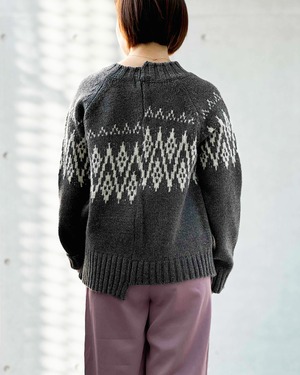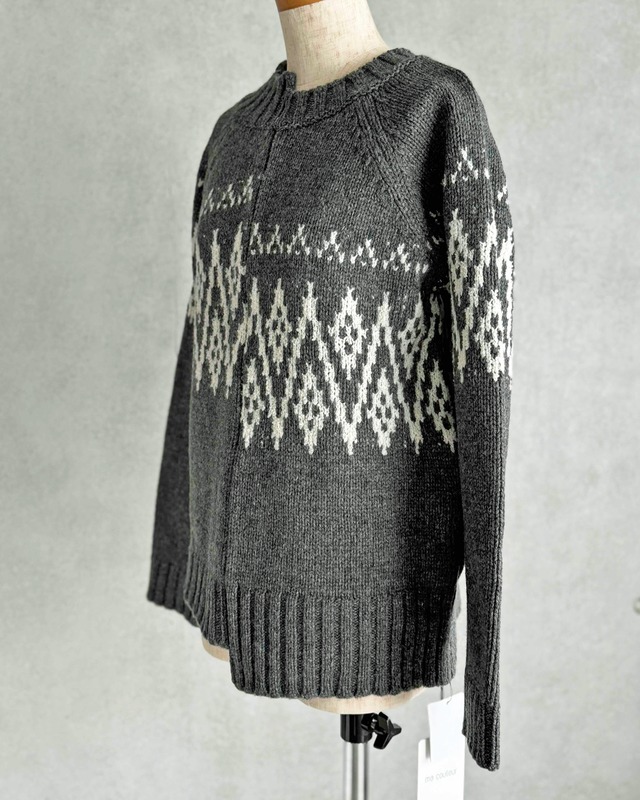 首元から裾まで、すべてが一段ズレたようにデザインされており