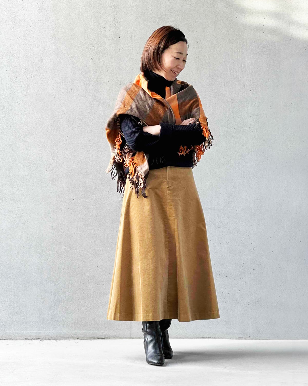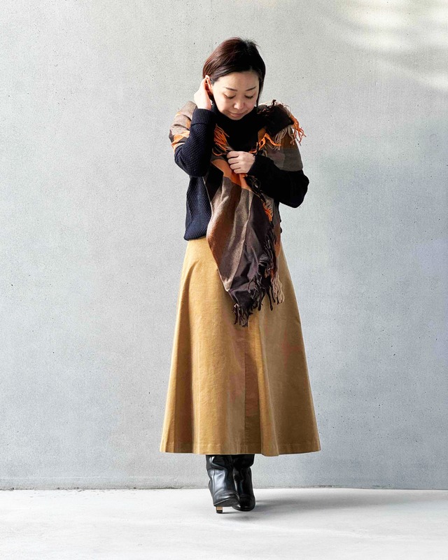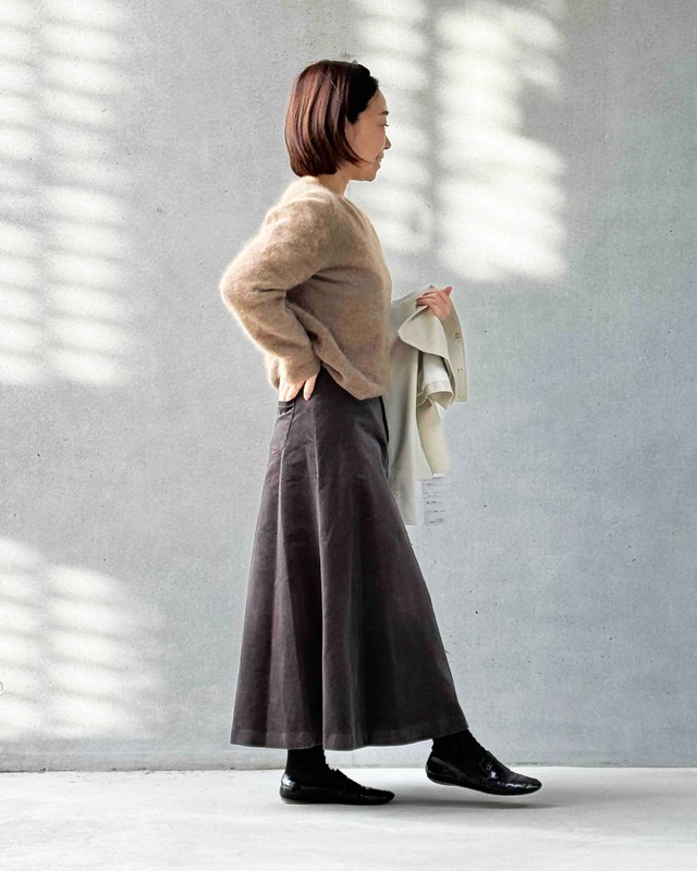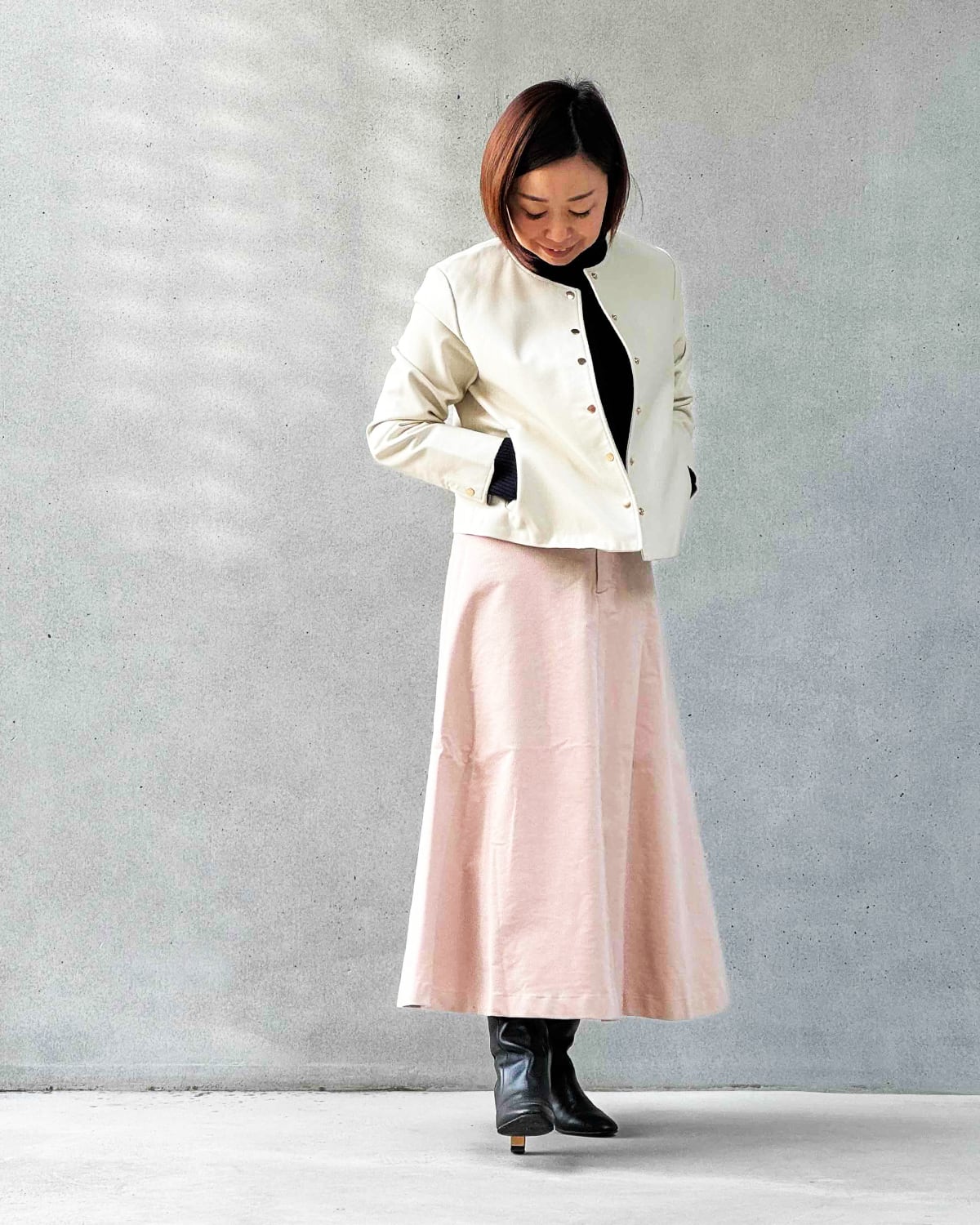 ニットをインして着たい方は1サイズ上げても良いと思います。